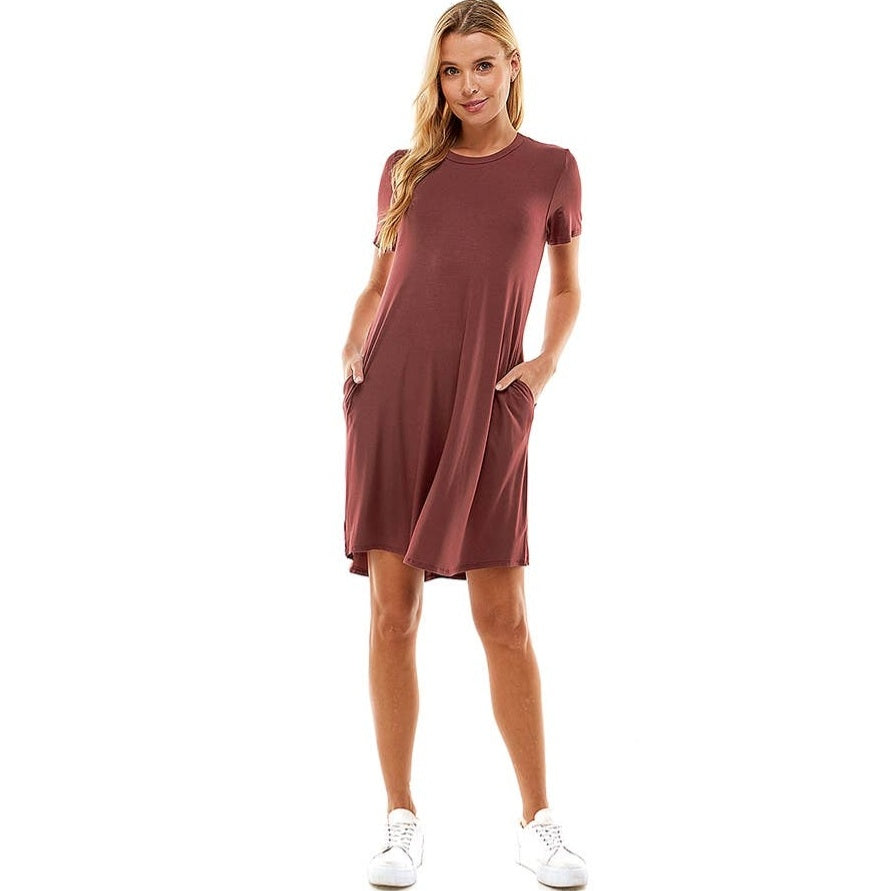 ***New*** Curved Hem Midi Dress with extra pockets. Perfect for all occasions, from relaxing at home to a casual girls' night out. Skin soft premium rayon fabric and always made in the USA. Female Model: 5' 9"