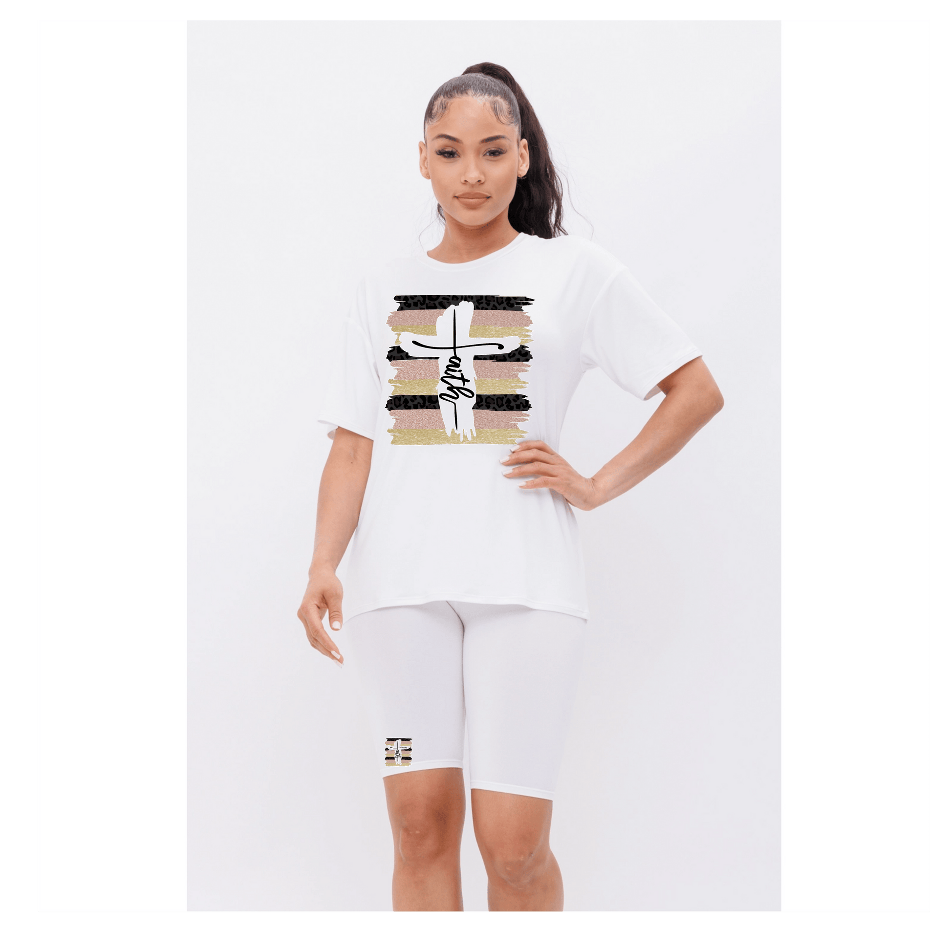 Round Neck Basic T-Shirts Top and Bike Shorts Set